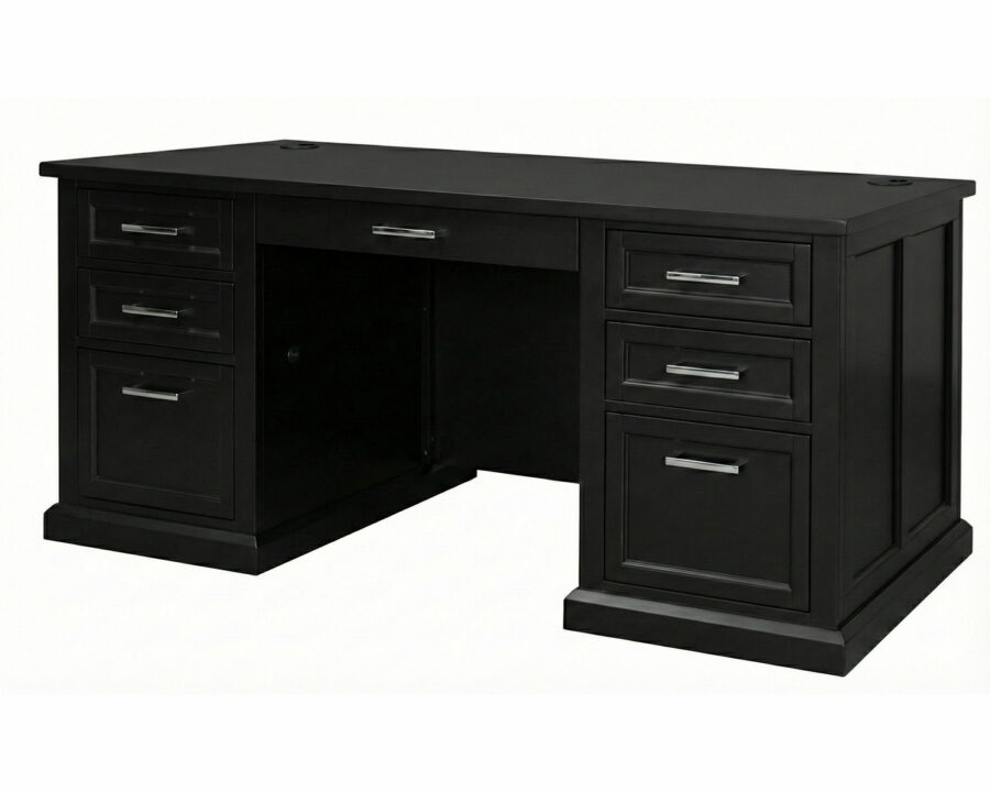 $1,791.00 Free Shipping on All Orders* Center storage drawer for your office supplies that allows plenty of desktop space to work Four utility storage drawers allow for maximum storage capacity and keeps your desk free from clutter Two locking file drawers holds hanging files to keep papers organized and secure Heavy-duty, ball bearing drawer slides allow drawers to open and close all the way with quiet and smooth movement Integrated desktop wire-management grommets help organize cables and keep the desktop clutter-free Finished on all sides for placement anywhere in any room The Abby collection blends modern versatility with classic looks. Simple refined details such as modern shaker doors and bead board panels are accentuated with simple black or silver hardware and a crisp white or sleek black finish. Behind each door or drawer, you will find the quality and functionality you’ve come to expect from Martin Furniture. Abby is clean and elegant, perfect for shared family spaces that can be combined in any arrangement to create your ideal home office, media room or workspace. *For full warranty benefits, register your product at https://www.martinfurniture.com/contact-us/68″ W Double Pedestal Desk