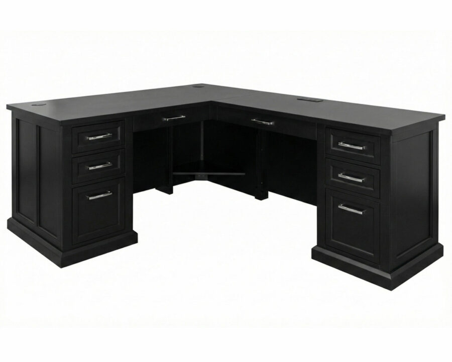 $2,415.00 Free Shipping on All Orders* Two center storage drawers for your office supplies that allows plenty of desktop space to work Four utility storage drawers allow for maximum storage capacity and keeps your desk free from clutter Two locking file drawers to hold hanging files to keep papers organized and secure Integrated desktop wire-management grommets help organize cables and keep the desktop clutter-free Power center with USB/AC outlets allows for multiple devices to be plugged in with ease Two pieces (desk and return) required for assembly Finished on all sides for placement anywhere in any room The Abby collection blends modern versatility with classic looks. Simple refined details such as modern shaker doors and bead board panels are accentuated with simple black or silver hardware and a crisp white or sleek black finish. Behind each door or drawer, you will find the quality and functionality you’ve come to expect from Martin Furniture. Abby is clean and elegant, perfect for shared family spaces that can be combined in any arrangement to create your ideal home office, media room or workspace. *For full warranty benefits, register your product at https://www.martinfurniture.com/contact-us/Pedestal L-Desk